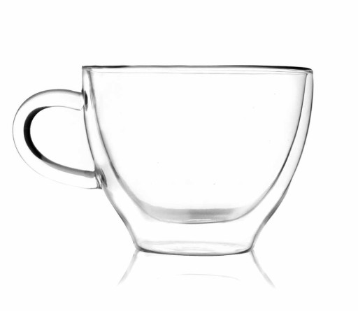 Funkcjonalna filiżanka z podwójną ścianką z kolekcji Amo marki Vialli Design. Wykonana ręcznie ze szkła boro-krzemowego najwyższej jakości, dzięki temu jest niezwykle odporna na matowienie. Szklanka dzięki podwójnym ściankom doskonale izoluje ciepło, utrzymuje temperaturę napoju na dłużej, a przede wszystkim chroni przed poparzeniem. Ergonomiczny kształt i uszko ułatwiają przenoszenie i zapobiega wyślizgnięciu się z ręki.