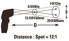 Do wykonania prawidłowego pomiaru konieczne jest, aby pole pomiarowe pirometru nie wychodziło poza przedmiot, którego temperaturę mierzymy.