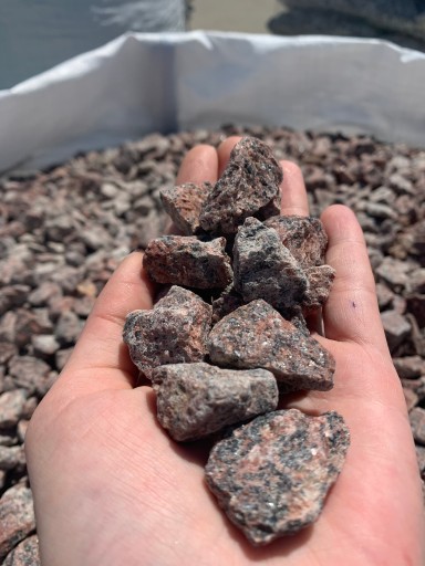 Dekoracyjny kamień do ogrodu, donic, aranżacji otoczenia. Szwedzki grys o czerwonym zabarwieniu.