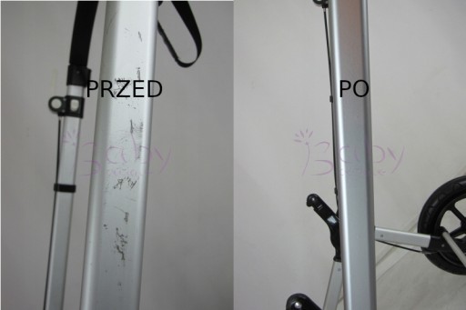 Można ją również zerwać, nie zostawiając śladów na stelażu. Idealna jako okleina renowacyjna przed sprzedażą wózka lub jako element podnoszący estetykę używanego egzemplarza.