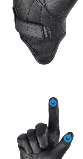 Rękawice SUOMY są niezwykle lekkie i wygodne. Największą ich zaletą dzięki specjalnej powłoce jest możliwość obsługi telefonu palcem wskazującym. Rękawiczki zapinane są na rzep dzięki czemu ich zakładanie jest szybkie i wygodne. Idealnie dopasowują się do kształtu dłoni. Rękawice posiadają eleganckie osłony kostek i kostek palców. Wykonane są ze skóry. Starannie wykonane poszycia nie uwierają i nie przeszkadzają podczas jazdy. Można ich używać zarówno do jazdy na motocyklu jak również do biegania, chodzenia po górach, jazdy konnej, strzelectwa czy innych zajęć na świeżym powietrzu.