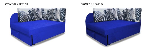Możliwość bezpłatnej zmiany grafiki obiciowej na poduszkach. Wszystkie dostępne grafiki można zobaczyć poniżej. Na każdej z poduszek umieszczona jest jedna grafika, tak jak widoczne jest to na przykładzie z zebrami.