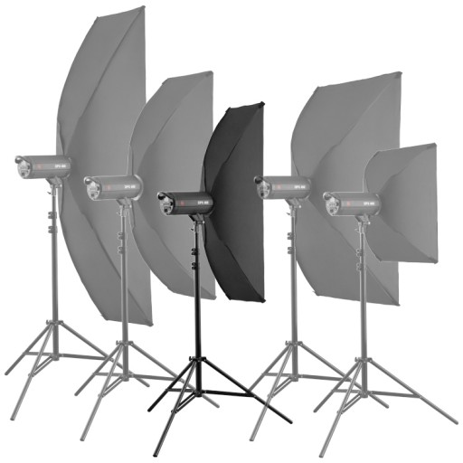 Szkielet softboxa został wykonany całkowicie z metalowych elementów. Regularny kształt i idealne napięcie poszycia modyfikatora zapewniają metalowe pręty. Modyfikator został wyposażony w obracany pierścień mocowania z adapterem w standardzie Bowens.