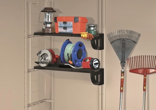 - domek posiada na wyposażeniu dwie funkcjonalne półki