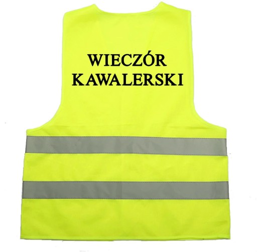 Kamizelka odblaskowa z nadrukiem. Oryginalny gadżet na Wieczór Kawalerski dla całej ekipy przyszłego Pana Młodego. Kamizelka to również idealny, zabawny prezent na tę okazję.