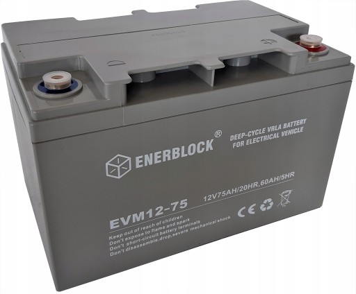 Akumulatory ENERBLOCK E-Vehicle AGM z serii EVM zostały wyprodukowane w technologii AGM (Absorbent Glass Mat). Są bezobsługowe oraz szczelnie zamknięte (VRLA) umożliwiając pracę akumulatora w dowolnej pozycji oraz w słabo wentylowanych pomieszczeniach gwarantując komfort oraz pełne bezpieczeństwo obsługi. Akumulatory AGM, w porównaniu do akumulatorów żelowych, posiadają zwiększoną koncentrację energii co pozwala uzyskać większą pojemność (Ah) przy mniejszym gabarycie oraz niższej wadze akumulatora.