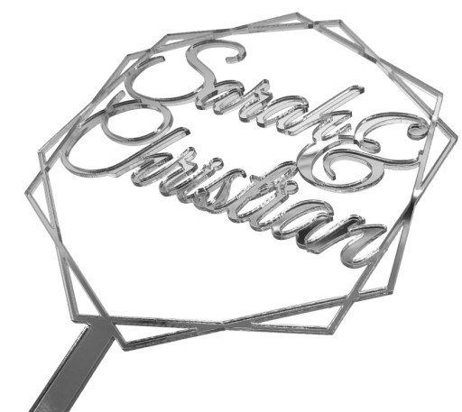 Топпер с именами жениха и невесты ИМЕНА серебряный зеркальный