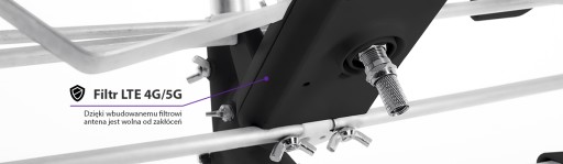 Antena Spacetronik EOS została wyposażona w filtr LTE 4G (oraz nowy 5G), który obcina niepożądane pasma, eliminując zakłócenia.