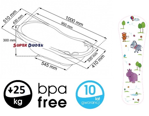Pasuje do wanienek firmy Tega Baby oraz Keeeper o długości 100/102 cm. Długość jest regulowana poprzez blokadę na odpowiednim "ząbku".