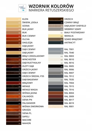 Produkt przeznaczony do retuszu uszkodzeń na powierzchniach pokrytych okleiną PCV oraz z drewna i tworzyw sztucznych.