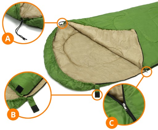 Śpiwór zapinany jest na zamek błyskawiczny zabezpieczony rzepem przed przypadkowym rozpięciem.