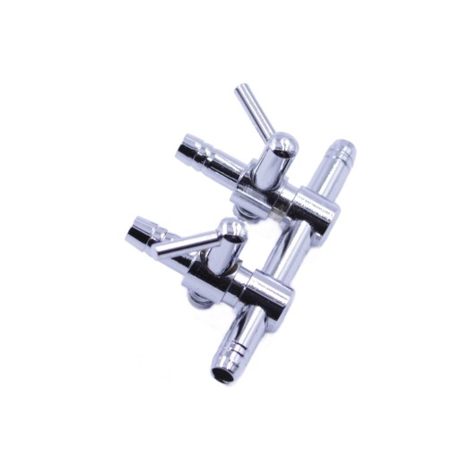 Trójnik wykonany jest z wysokiej jakości materiału. Zaworki dławiące są zaprojektowane z myślą o precyzyjnej regulacji strumienia gazu oraz o całkowitej szczelności układu podczas zamknięcia przepływu, nawet przy użyciu wysokiego ciśnienia.