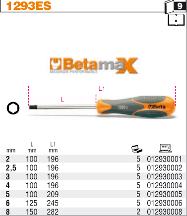 Wkrętak z końcówką trzpieniową, sześciokątną - Włoskiej firmy Beta