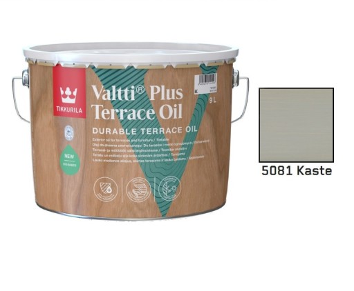 Tikkurila Valtti Plus Terrace Oil wnika w drewno i tworzy bardzo trwałą powierzchnię. Dla Tikkurila Valtti Plus Terrace Oil 75% całkowitej zawartości węgla organicznego zostało zastąpione składnikami pochodzenia roślinnego (oznaczone zgodnie z ASTM D6866-18), co stanowi 18% w odniesieniu do całkowitego składu produktu.