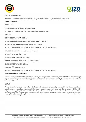- SZEROKOŚĆ STREFY EKSPANSJI (WŁÓKNINA PP) - 120mm