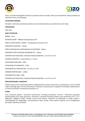 - SZEROKOŚĆ STREFY EKSPANSJI (WŁÓKNINA PP) - 120mm