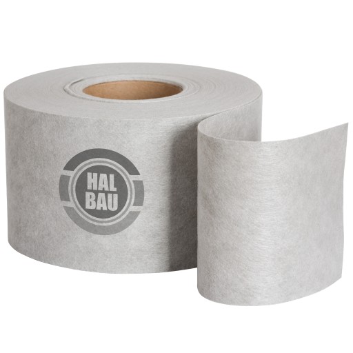 DICHTBAND 120/120mm HALBAU HS03 jest to specjalna, bardzo elastyczna taśma uszczelniającą – trylaminat w kolorze szarym, wykonana z najwyższej jakości, poprzecznie elastycznej flizeliny poliestrowej oraz najwyższej jakości membrany uszczelniającej w postaci termoplastycznego elastomeru 100%. Zastosowana specjalna flizelina poliestrowa o wysokiej gramaturze po obu stronach rdzenia elastomerowego znacząco poprawia przyczepność taśmy uszczelniającej do wszystkich rodzajów płynnych, polimerowych oraz polimerowo cementowych mas uszczelniających marki HALBAU. Zastosowany najwyższej jakości elastomer jest odporny na powszechnie stosowane do czyszczenia oraz sprzątania środki chemiczne i detergenty, jest również odporny na promieniowanie UV, starzenie, grzyby i pleśnie oraz pozostaje długotrwale elastyczny i termoplastyczny.
