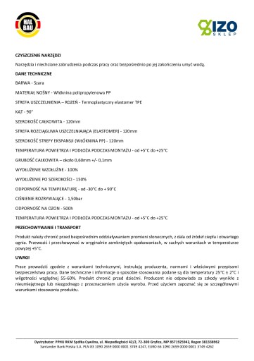 - SZEROKOŚĆ STREFY EKSPANSJI (WŁÓKNINA PP) - 120mm