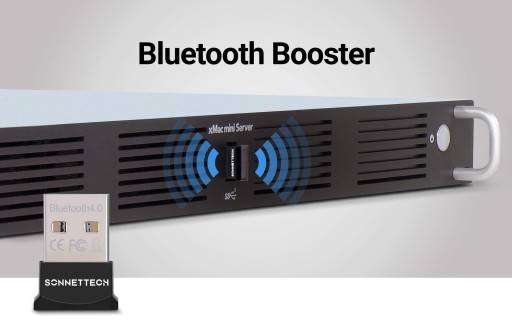 Dla każdego użytkownika Mac mini®, który zamontował swój komputer w jednym z rozwiązań Sonnet Mac mini rack, poprawa wydajności Bluetooth® komputera jest bardzo prosta — wystarczy podłączyć adapter Sonnet Long-Range USB Bluetooth 4.0.