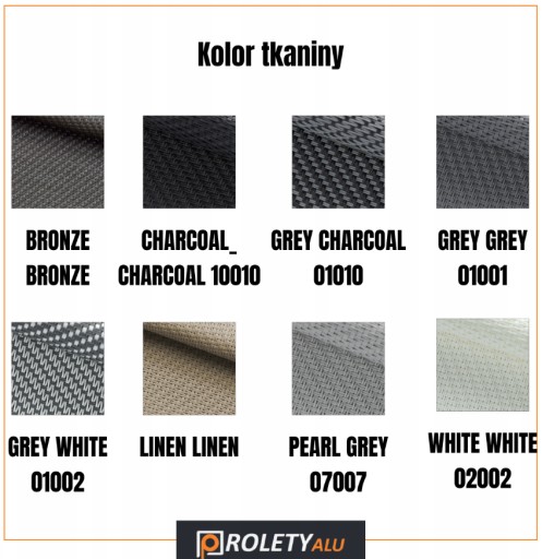 Poniżej przedstawiamy kolory skrzynki, prowadnic i tkanin do wyboru.