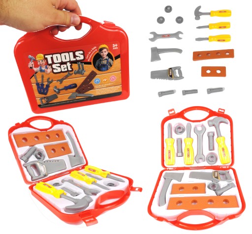Zestaw z narzędziami to wspaniała zabawka pozwalająca dziecku na naśladowanie czynności jakie wykonują dorośli oraz dająca możliwość na poznawanie przedmiotów niezbędnych w każdym warsztacie, bez obaw o jego bezpieczeństwo.