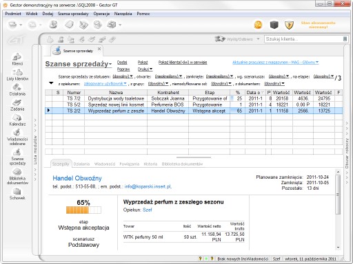 - szybki dostęp do wszystkich informacji dotyczących klientów: działań, wiadomości, szans sprzedaży, dokumentów wystawionych w Subiekcie GT;