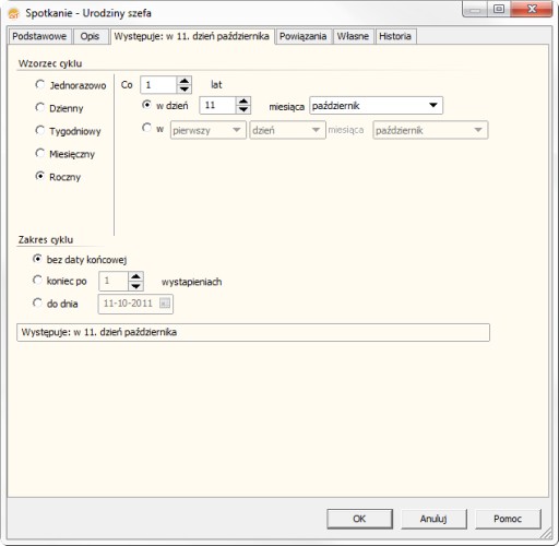 - kalendarz pokazujący zakres i termin czynności do wykonania (w widoku miesięcznym, tygodniowym i dziennym) wraz z funkcją przypominania;