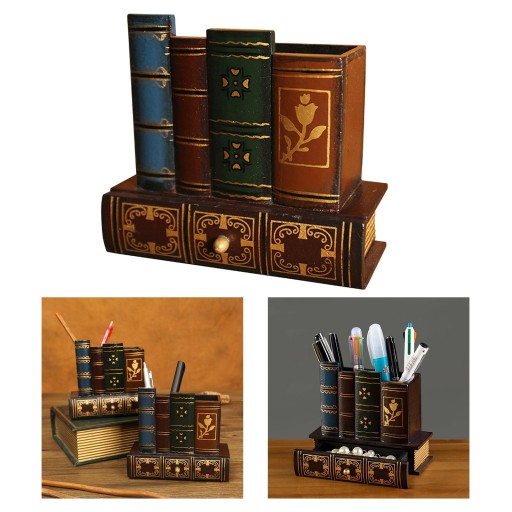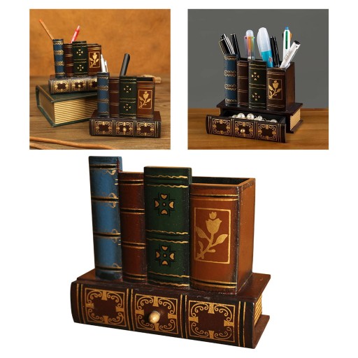 Multi function retro book shaped desk organizer storage box pen pencil holder.