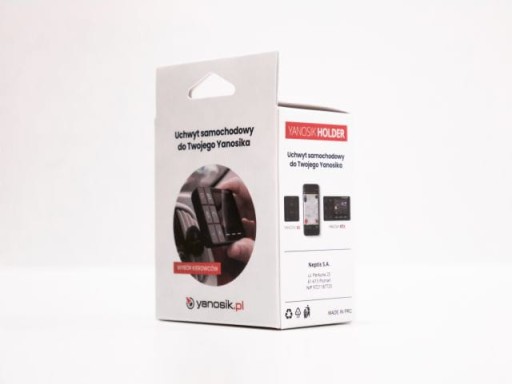 Yanosik Holder wyposażony jest w zintegrowany magnes neodymowy oraz dwie blaszki montowane do urządzenia (jedna okrągła, druga prostokątna do większych urządzeń).