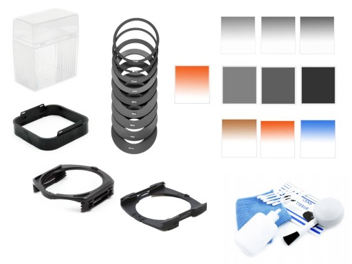 W zestawie znajduje się 10 typów filtrów kwadratowych typu COKIN: