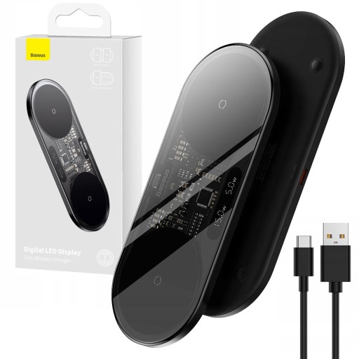 Ładowarka bezprzewodowa QI - podwójna - 2 x 10 W - kabel USB / USB-C - Baseus WXSX010101