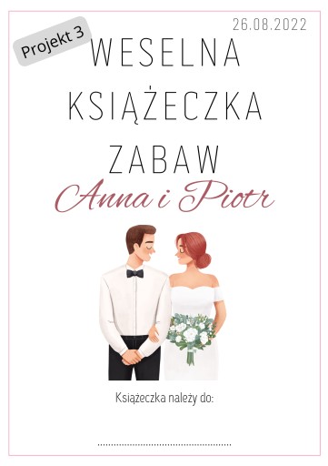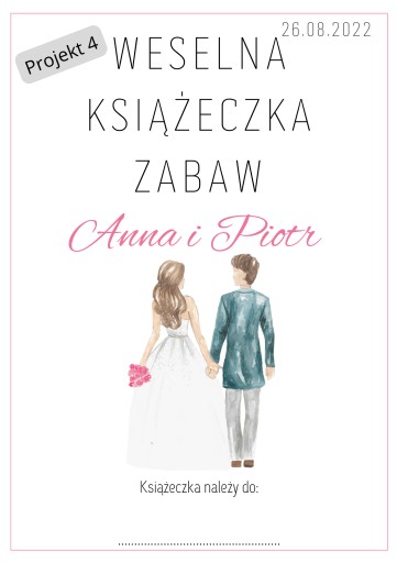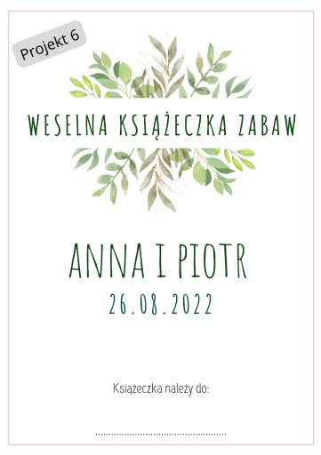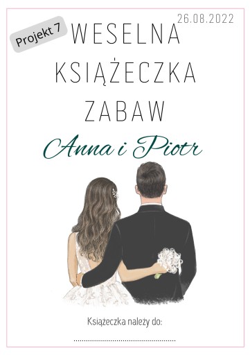 UWAGA! JEŻELI W MOMENCIE ZAMÓWIENIA W "WIADOMOŚCI DO KUPUJĄCEGO" NIE ZOSTANĄ PODANE IMIONA, DATA ŚLUBU ORAZ NUMER PROJEKTU - KSIĄŻECZKI NIE ZOSTANĄ SPERSONALIZOWANE A PIERWSZA STRONA BĘDZIE TO PROJEKT 1 - BEZ IMION I DATY.