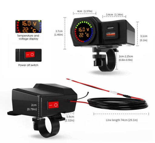 Nazwa produktu: motocykl z kolorowym ekranem temperatury i wyświetlaczem napięcia podwójna ładowarka z portem USB + C