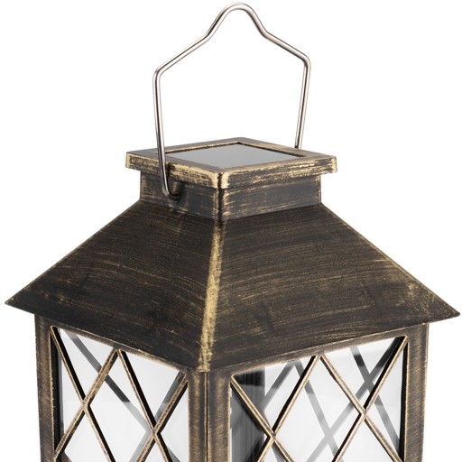 Lampa solarna stojąca/wisząca o wysokości 28 cm w kolorze patyny sprawdzi się jako dekoracyjne i praktyczne oświetlenie Twojego ogrodu. Idealnie podkreśli atmosferę otoczenia oraz wniesie wokół domu niepowtarzalny klimat, dzięki niezwykłej grze świateł i cieni.