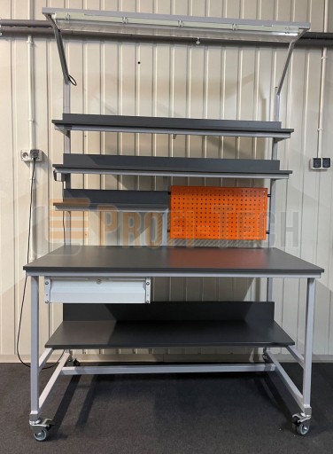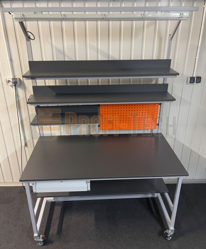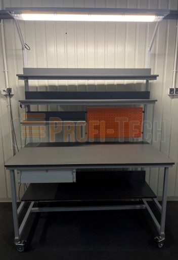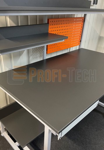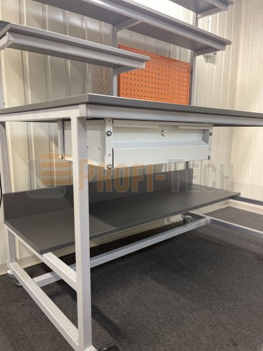 uchwyt na drukarkę do etykiet, uchwyt do worków na odpady, półki boczne, moduł oświetlenia, moduł cięcia folii, zmiana materiału blatu roboczego.