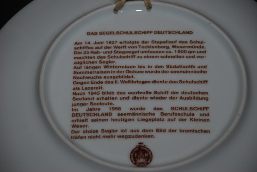 Z tyłu opisana historia (w języku niemieckim) dotycząca motywu przedstawionego na górnej stronie talerza.