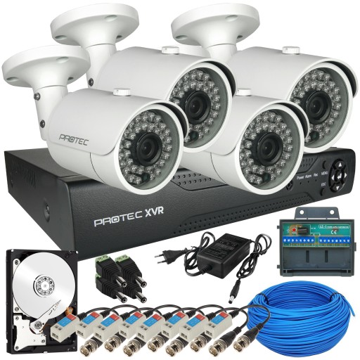 Zestaw pozwoli na zabezpieczenie budynku 4. kamerami i zawiera wszystko co potrzebne do uruchomienia. Kamery mogą być zamontowane zarówno w środku pomieszczeń, ale również doskonale sprawdzą się na zewnątrz. Szczelna, metalowa obudowa o klasie IP66 wytrzyma wszystkie warunki atmosferyczne. Do kamer będziesz mieć dostęp lokalnie poprzez telewizor lub monitor, a także poprzez sieć lokalną oraz zdalnie na urządzeniach mobilnych. Cały system monitoringu uruchomisz i skonfigurujesz bez specjalistycznej wiedzy ani narzędzi.