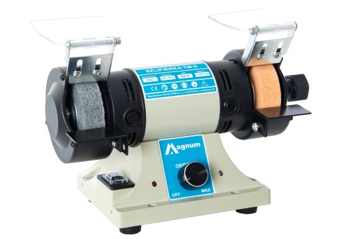 Solidna szlifierko-polerka stołowa MAGNUM. Wyposażona w dwie tarcze: kamień do szlifowania oraz filc do polerowania. Silnik do pracy dorywczej w grupie natężenia S2-20 min. Płynna regulacja obrotów zwiększa funkcjonalność szlifierki, ponieważ możemy pracować w różnorodnych materiałach oraz narzędziami o zróżnicowanych średnicach. Solidne wykonanie, oraz silnik o mocy 400 W pozwalają na bezpieczną i wygodną pracę z urządzeniem.