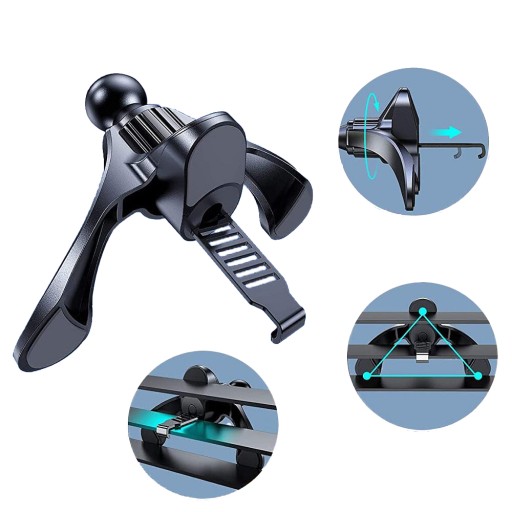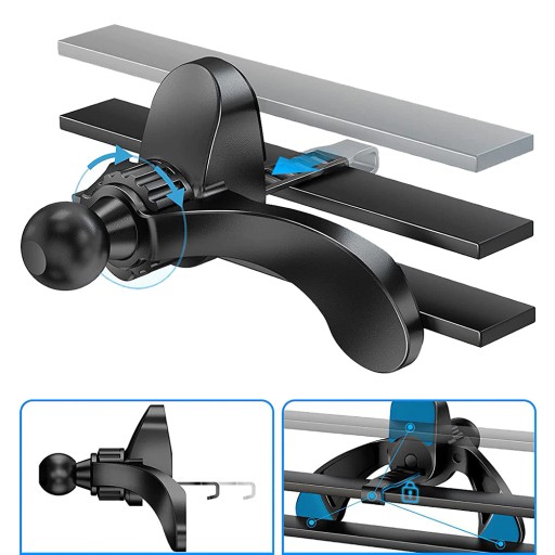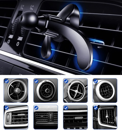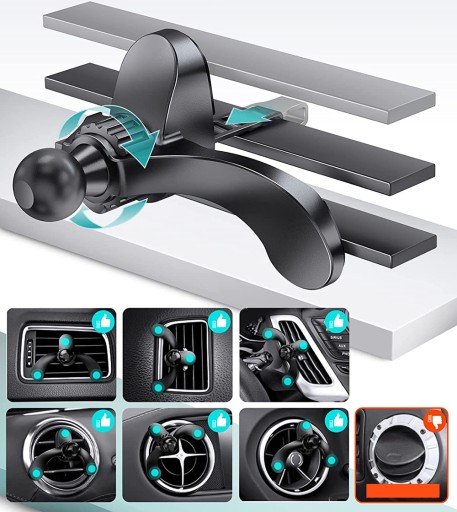 Montaż w kratce nawiewu, dzięki specjalnie zaprojektowanej stopce z trzema punktami podparcia sprawia że, mocowanie jest trwałe i stabilne. Zamontowany w ten sposób uchwyt nie zasłania pola widzenia, a regulacja zapewnia ustawienie idealnej i komfortowej pozycji urządzenia.