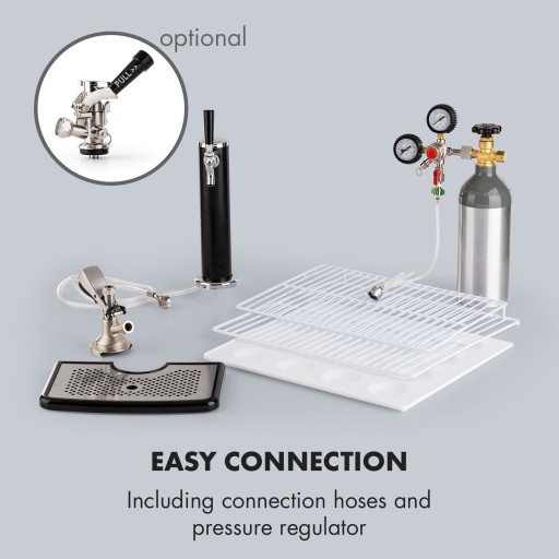 - Proszę zwrócić uwagę, że do podłączenia beczek z piwem w zestawie znajduje głowicę koszową (typ S), się głowica z płaskim łbem (typ A) można zakupić jako osprzęt