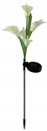 - Konstrukcja wykonana jest ze stali nierdzewnej co podnosi prestiż lampy.Lampa zakończona kompozytowym grotem co ułatwi wbicie lampy w podłoże.W połowie wysokości lampy umieszczona jest platforma modułu solarnego, który jest wyposażony w akumulator zapewniający, że kwiatki lśnią w ciemności.