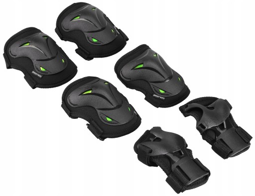 Komplet ochraniaczy został zaprojektowany w taki sposób, aby skutecznie ochraniać nadgarstki, łokcie i kolana podczas upadków. Ochraniacze wyposażono w elastyczne paski z rzepami, służące do ich optymalnego dopasowania do ciała, co zwiększa przyjemność i bezpieczeństwo jazdy.