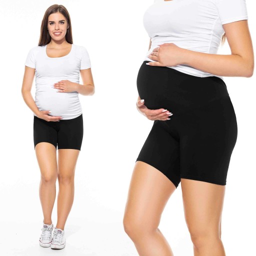 Krótkie legginsy z delikatnej dzianiny z panelem ochronnym na brzuszek M CZARNE