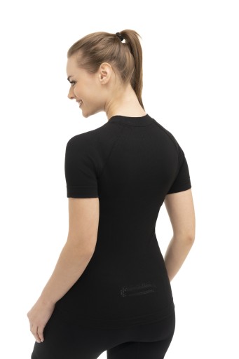 Tak wyjątkowe właściwości termoregulacyjne to zasługa nowoczesnej dzianiny o strukturze przypominającej plaster miodu, co skutkuje większą powierzchnią odbioru wilgoci, wytworzonej w trakcie aktywności. Konstrukcja ta powstała na bazie wzmocnionej trójwymiarowej siatki, o przestrzennej budowie. Dzięki temu wytworzone i naturalnie ogrzane przez organizm powietrze, gromadzi się między skórą a koszulką, tworząc barierę cieplną, która nie pozwoli na przegrzanie oraz wychłodzenie. Koszulka jest wykonana bezszwowo, co chroni przed wspomnianym powyżej powstawaniem otarć i nieprzyjemnych podrażnień. Idealnie dopasowuje się też do kształtu sylwetki, nie krępując przy tym ruchów.