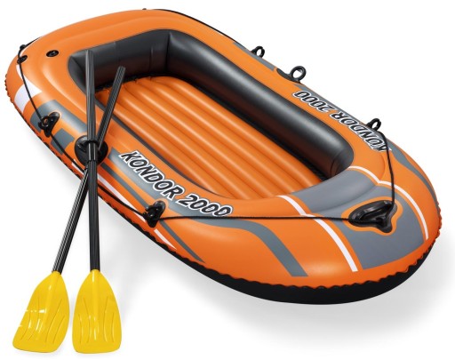 Do zestawu dołączone są dwa wiosła oraz pompka nożna.