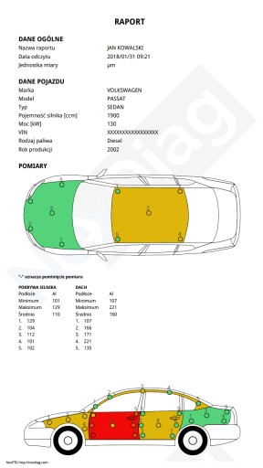 Jest to najwyższa wersja miernika NexPTG Professional - przeznaczona dla użytkowników domowych ale także dla profesjonalistów - warsztatów, rzeczoznawców. Dlaczego? Dzięki funkcji tworzenia RAPORTÓW oszczędzisz mnóstwo czasu na żmudnym wpisywaniu pomiarów ręcznie, program wygeneruje raport za Ciebie podpowiadając miejsca pomiarowe na rzucie elementu badanego, zaczynając od maski. Przed dokonaniem pomiaru uzupełniasz informacje o badanym pojeździe w zależności od wymagań firmy w której pracujesz podając model samochodu, wybierając rodzaj nadwozia, wpisując numery rejestracyjne, VIN itp. Wersja Professional charakteryzuje się niebieską obudową. Posiada także system Analizy Powłoki Lakierniczej SAPL, który umożliwia łatwe wykrycie lakierowanych czy szpachlowanych elementów karoserii. Pomiaru dokonuje także w szerszym zakresie od 0-2500µm.