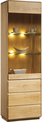 Ta oferta dotyczy witryny pojedynczej, lewostronnej z linii ATLANTA, TYP 10 wyposażonej w dwie półki szklane oraz trzy pojemne, z cichym domykiem szuflady, świetnej propozycji praktycznego, funkcjonalnego mebla do wnętrza salonu.