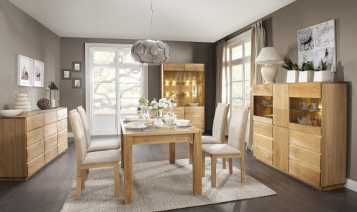 Pachnąca naturą kolekcja mebli ATLANTA to połączenie ekologii, tradycji i nowoczesności. O tradycji i ekologii decyduje użycie naturalnego dębu, dębowego forniru oraz wykończenie powierzchni olejem i woskiem. Główne cechy kolekcji ATLANTA to szlachetność, zachowana równowaga i proporcje, harmonia, prostota kształtów, lekkość brył, przenikający przez całą płaszczyznę frontu układ słojów, naturalna barwa dębu.