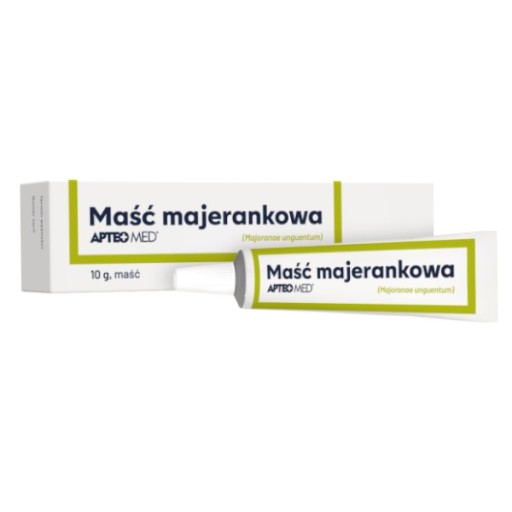 10 g maści zawiera substancję czynną: 100 g wyciągu z ziela majeranku (Majoranae herbae extractum) 100g/100g.