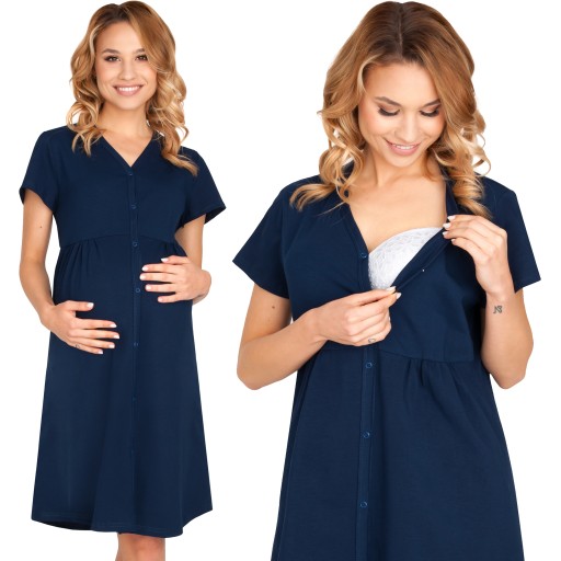 KOSZULA CIĄŻOWA DO SZPITALA NOCNA DO KARMIENIA PORODU ROZPINANA GRANATOWA L